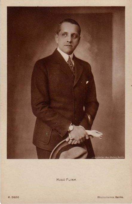オーストリア出身の俳優ヒューゴ・フリンク(Hugo Flink、1879 – 1947)です。1910年から映画に出演しており、10年代にアスタ・ニールセンやヘンニ・ポルテンの相手役を務めるなど人気のあった役者です。