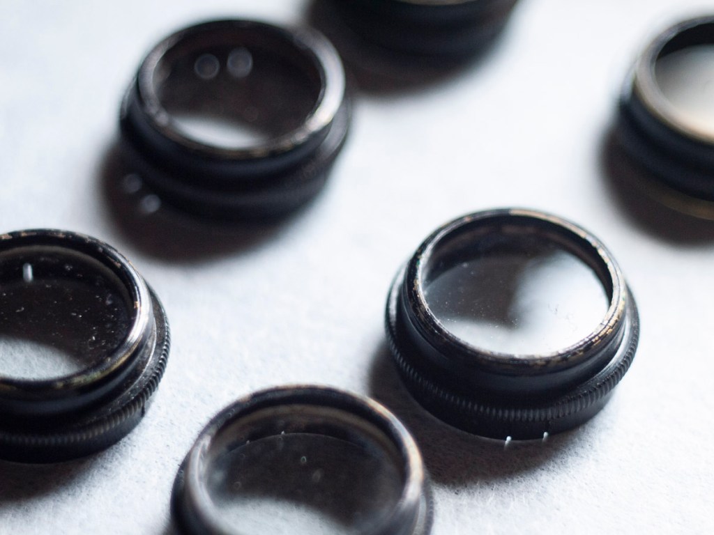 接写も苦手。パテ社は補正用のレンズを用意しました。25センチ、50センチ、1メートル、1.5メートル、2メートル用のポートレート・レンズと、コントラスト調整用のシャープカットフィルター(黄色)の6つをセットにしたのがこちら。