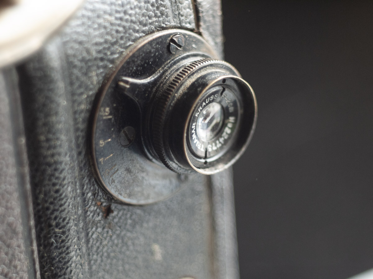 最初期のパテベビー撮影機はレンズが単焦点でした。「ピントをあわせる」という発想がなく、普通に撮影すると狙っていた対象に上手く焦点があっていなかったりします。