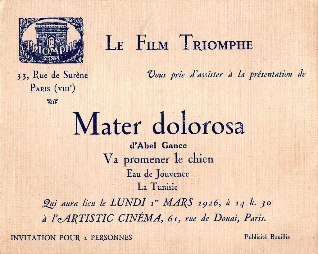 1910年代にはよほどの売れっ子でなければ監督名が前に出てくることはなかったため『悲しみの聖母』も公開後は見返されることもなく忘れ去られたままになっていました。 20年代になると監督を主軸に映画を理解していく見方が市民権を得るようになっていきます。この時期のフランスでは「質・量ともに合衆国、ドイツに後れを取っている」負い目が広がっていて、世界市場で勝負できそうなガンス監督にかける期待も大きかったのです。