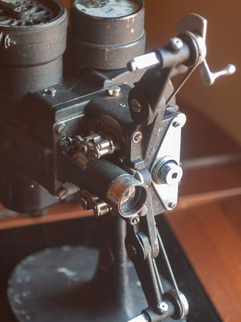 走行が安定しておりフレーミングのがたつき等はなし。8ミリ用リージェント映写機同様、精度の高いパーツがかっちりと連動しているB&H社特有の綺麗な動きをしています。ただしこの映写機には排熱装置が備わっていません。ランプハウス上部しか熱の逃げ場がなく映写中、機体が熱くなるので注意したいところです。20年代の映写機は鬼門のモーターに苦戦しましたが、手間暇をかける価値のある一台でした。