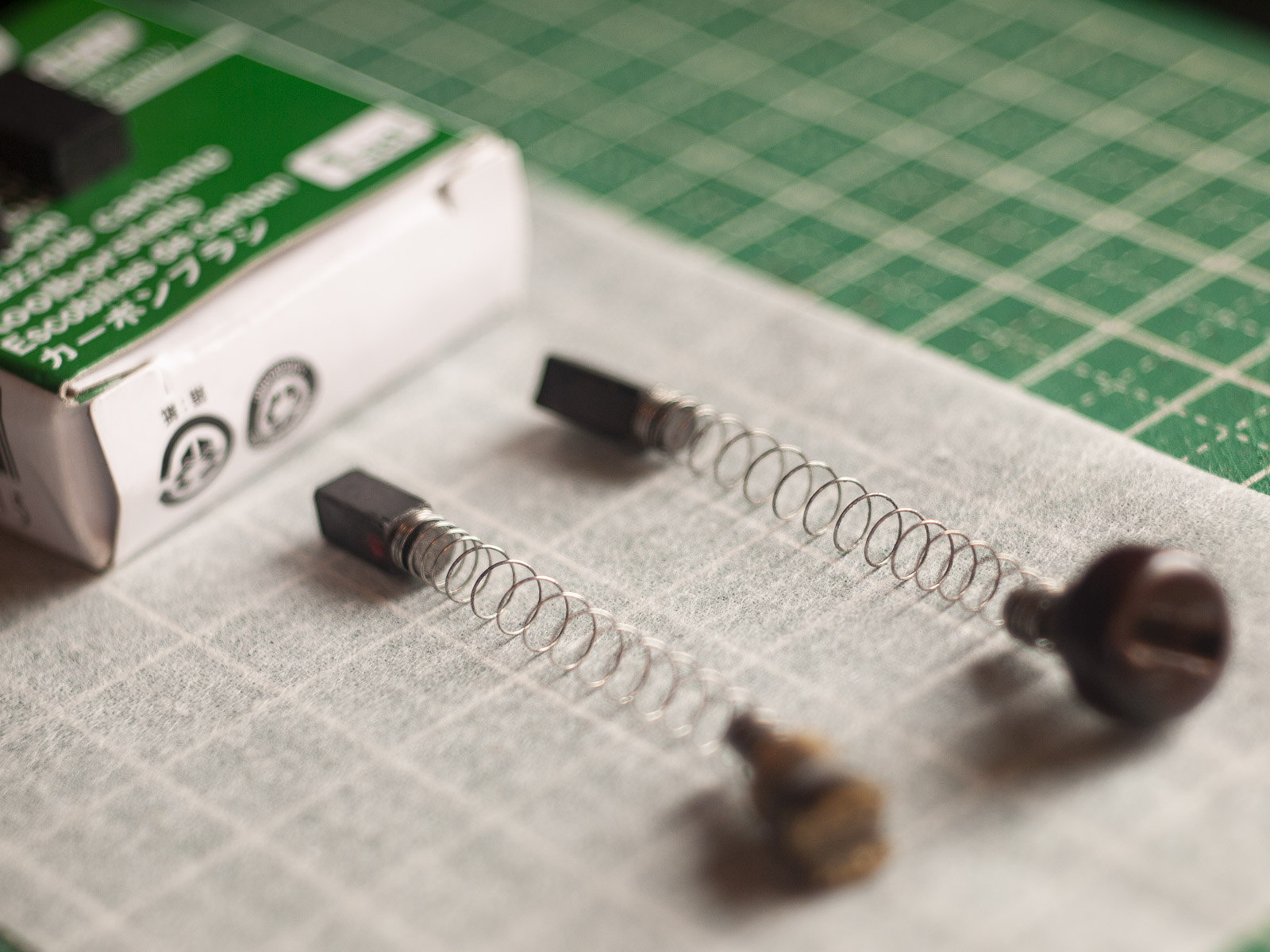 もう一つ狙っていたのがモーター用のカーボンブラシ。大分摩耗しているようで交換が必要でした。