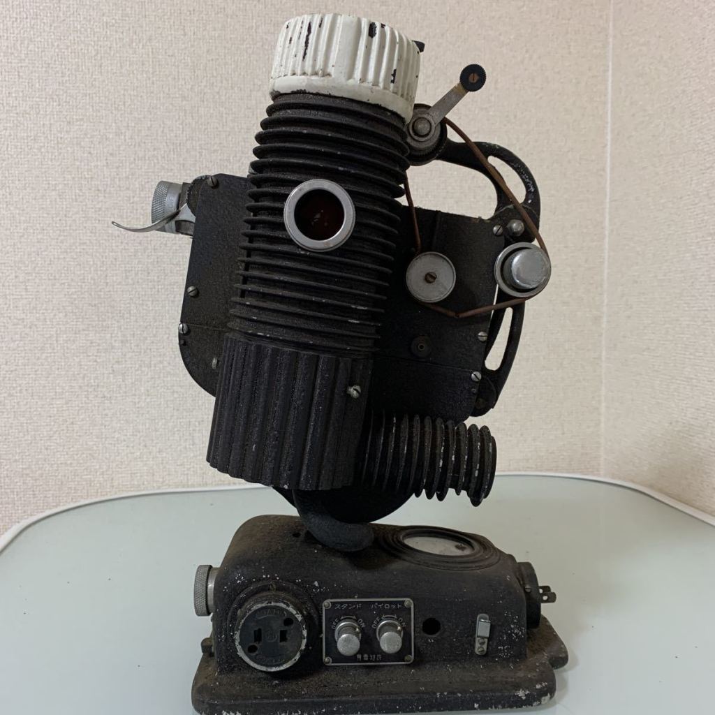 1931年にF型が発表された後も細かなモデルチェンジが行われています。当初はランプハウスの内部に抵抗が配されており、ランプハウスの屋根部分に添えられたレバーで明るさを調整する仕組みでした。その後抵抗器がランプハウス脇に独立して付けられるようになっています。今回入手したシリアル番号「F25452」の機体はこの後期改良形になっています。