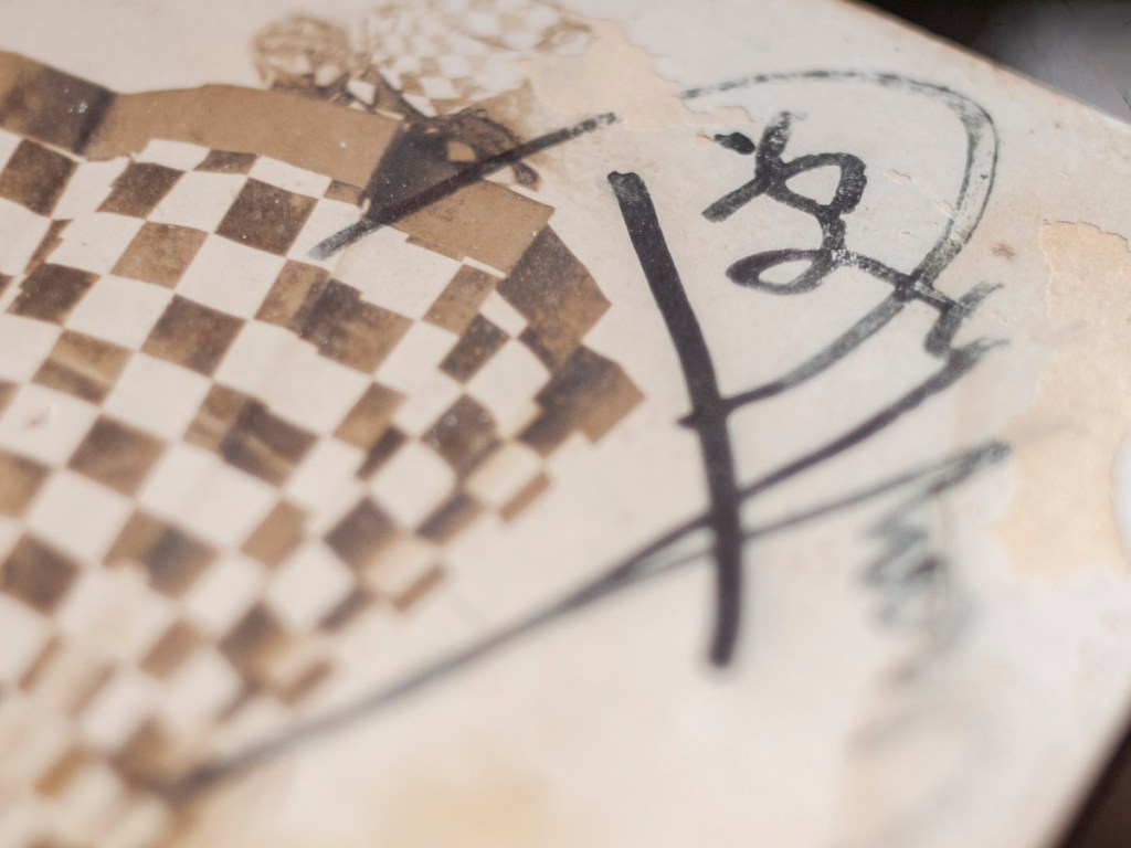 これまでに紹介してきたサインでは同じ東亞の竹内俊一氏が顔を模した洒脱なアイデアを採用していました。團德麿氏のサインはそれとも違っていて、むしろ(後に画家として名を挙げる)ストーウィッツに通ずる発想を含んでいます。怪優振りが強調されがちですが、自らの身体や名をオブジェクトとしてデザイン(あるいは改変・改竄)していくアート青年の姿がおそらく原点にあって、サインにもそういった側面がにじみ出ているのが興味深く思われます。