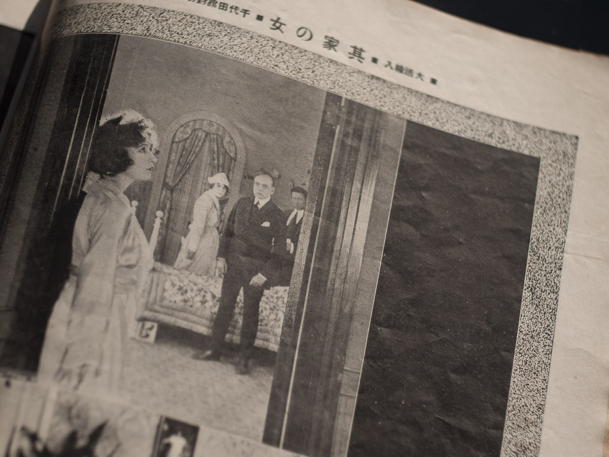 新作紹介欄にはフィルムの現存している独作品『アルゴール』と米作品『看護婦マージョリー』を見ることができます。ミルドレッド・ハリス主演の『其家の女』(The Woman in His House)と伊作品『生活』は編集部の好みが色濃く反映されたもの。邦画ではヘンリー小谷氏による『鞄』などが扱われています。