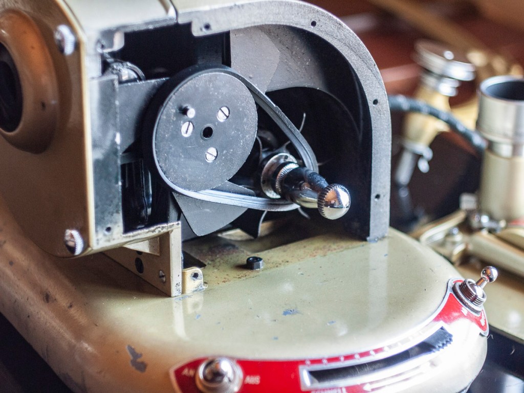 ジェム映写機は金属製部品が主体となっていてモーターベルトとモーターの脚の緩衝材にのみゴムが使用されています。この2ヶ所から劣化が始まり、機能不全が引き起こされてしまう典型例になっています。他の機体も遅かれ早かれ似たような運命を辿るはずで、修理の流れを一通り確認できたのは良い経験になりました。