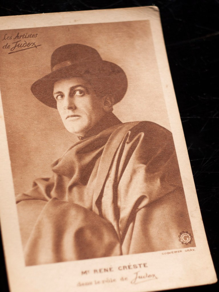 主人公ジュデックスを演じたのがルネ・クレステでした。マント姿の写真はメインポスターに使われ『ジュデックス』と言えばこのイメージが思い浮かぶ程の強い印象を残しました。クレステの実人生、特にその早世と残された妻子の辿った運命については別稿をご参照ください。