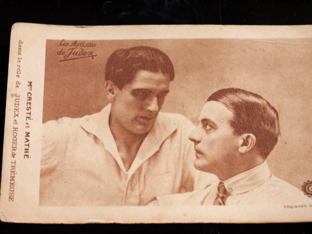 ゴーモン社の『ジュデックス』と『後のジュデックス』が公開された際に市販された絵葉書セット。元々12枚1組で今回は8枚を一括で入手。連続活劇史上、重要な作品の一つですので主要キャストをおさらいしておきたいと思います。
