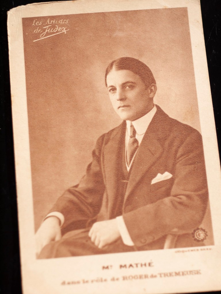 米俳優リチャード・バーセルメスにも似た柔和で端正な雰囲気を漂わせフイヤード活劇にはしばしばジャーナリストや外交官役として登場、悪と戦う役柄を演じていました。以前、仏興行師イゾラ兄弟に宛てた直筆書簡を手に入れています。