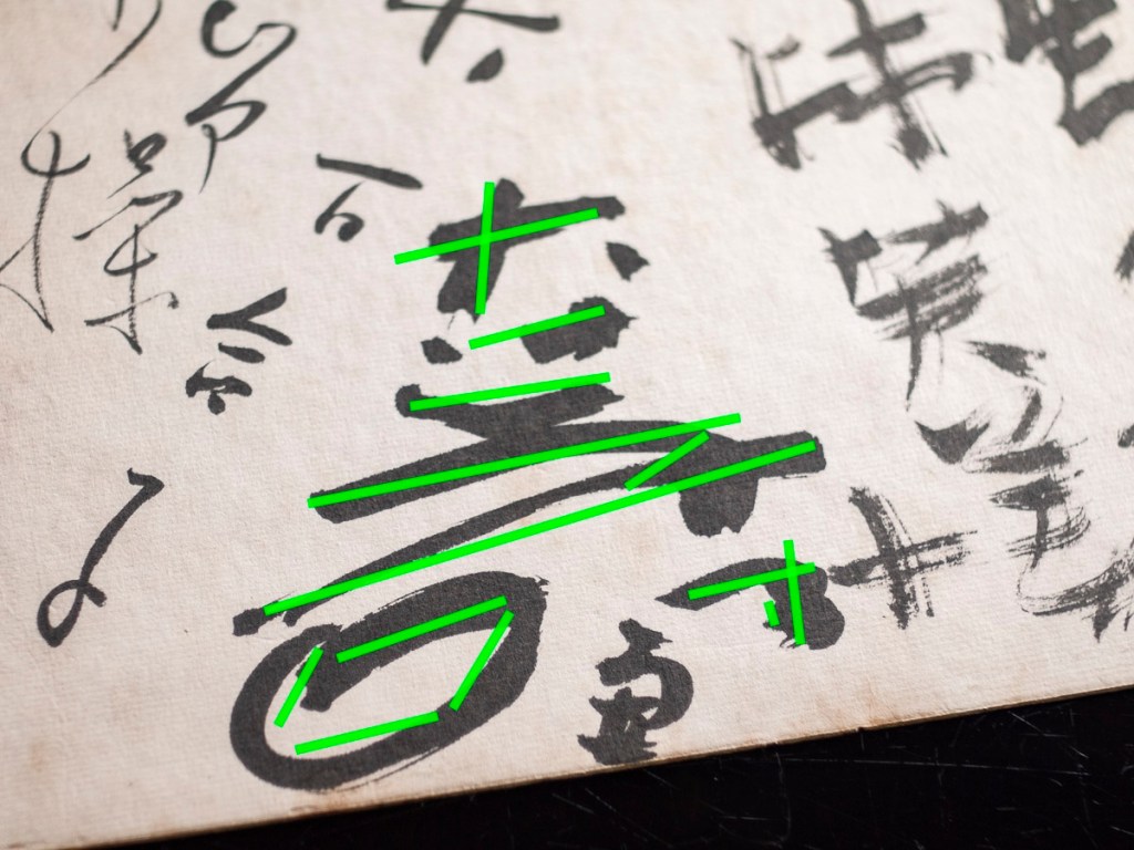 太めの力強い筆跡で大きく「壽」とあるのですが、もう一文字下に何かあるんですよね。