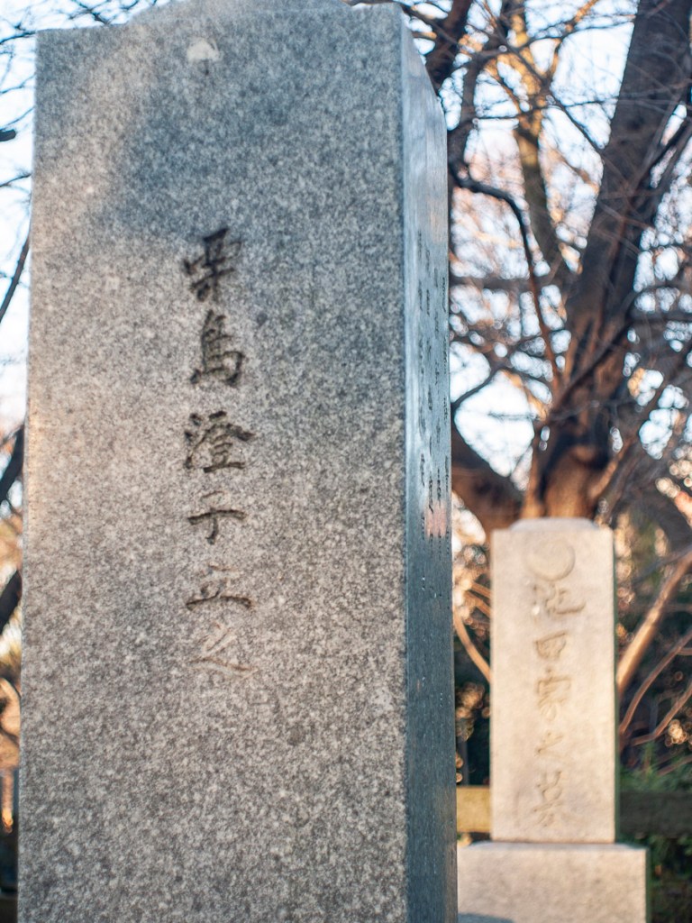 右手前に置かれていた記念碑。前面には歌人・吉井勇氏による悼歌、背面には代表作と受賞歴が記されています。