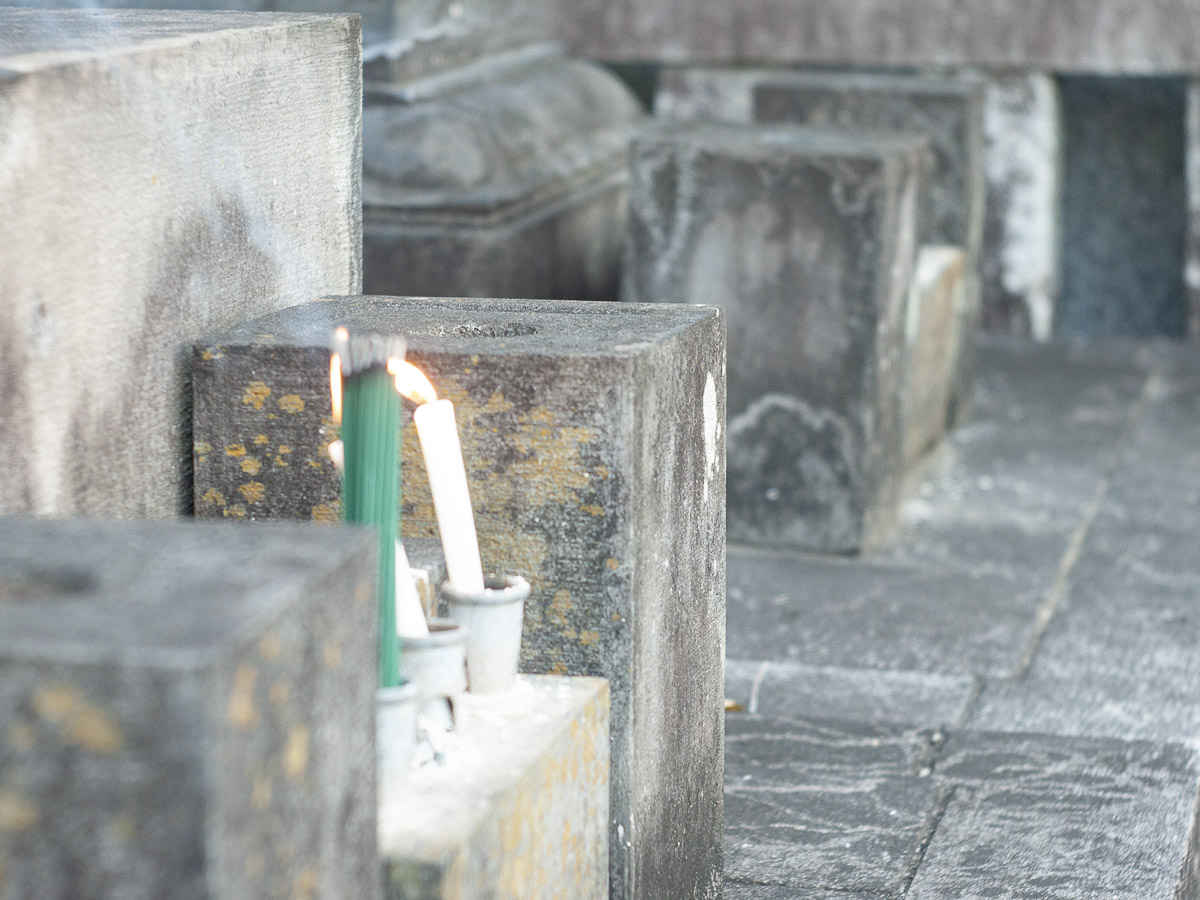 朝早い時間で参詣客の姿は疎ら。周りは薄暗く、地元の方々が時々ジョギングで墓所を抜けるように過ぎていきます。
