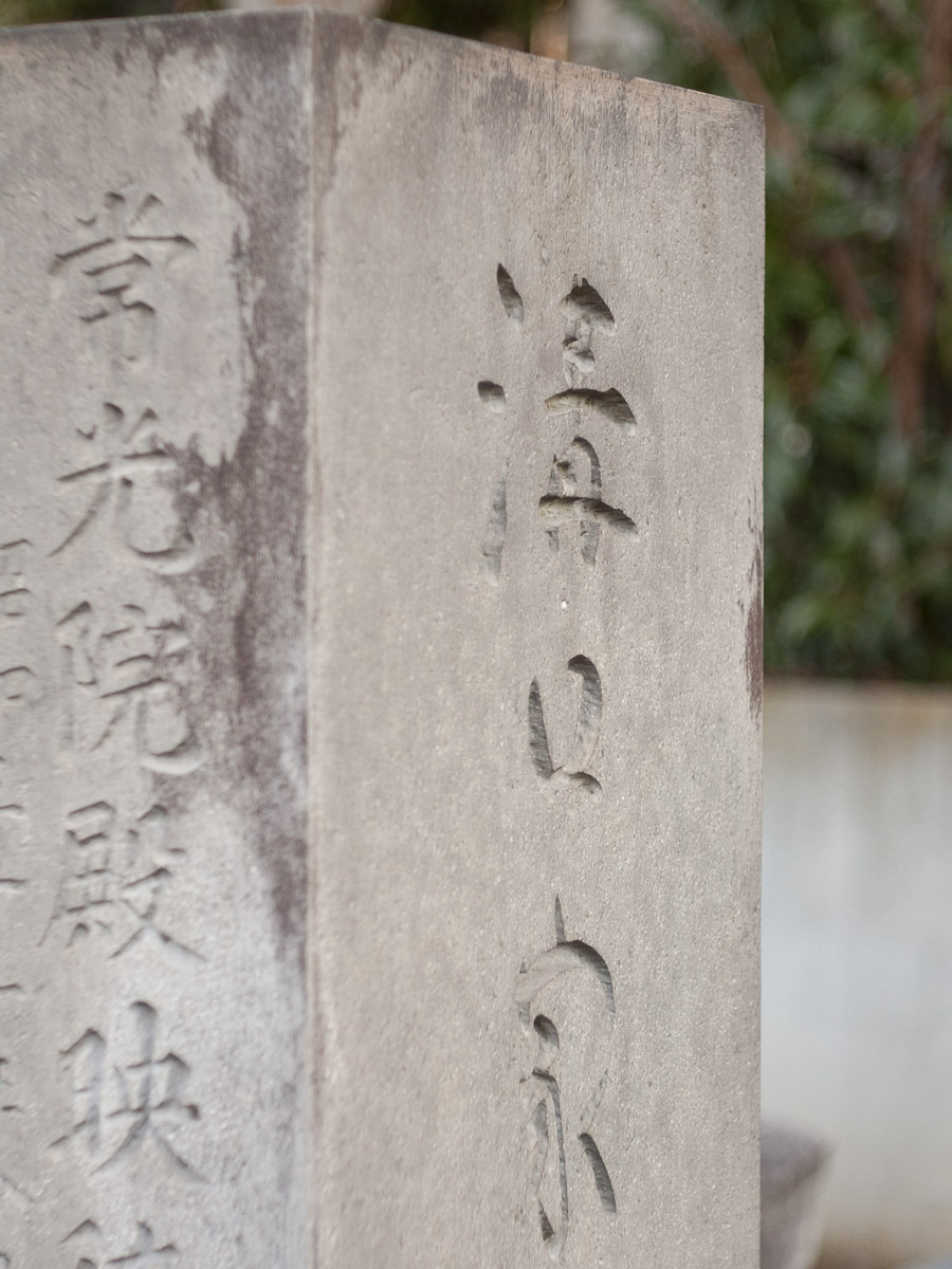墓石の左側面に「常光院殿映德日健居士」の戒名。