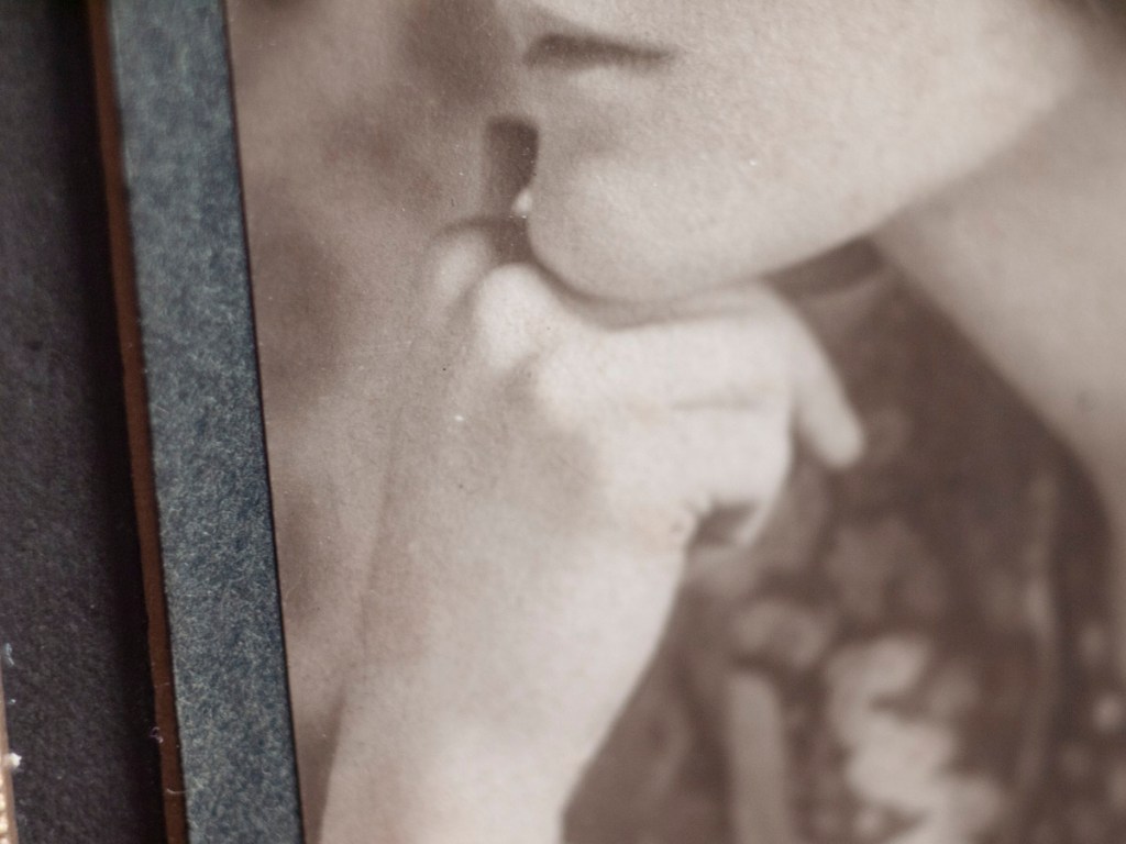経年で流れている個所が目立つものの文字自体ははっきりと読み取ることができます。メッセージには「je t’aime(貴方を愛しています)」が間接的に含まれており、彼女にとって身近な、親交の深い人物(交際相手だった可能性も有り)に宛てて送られた特別な一枚になっています。