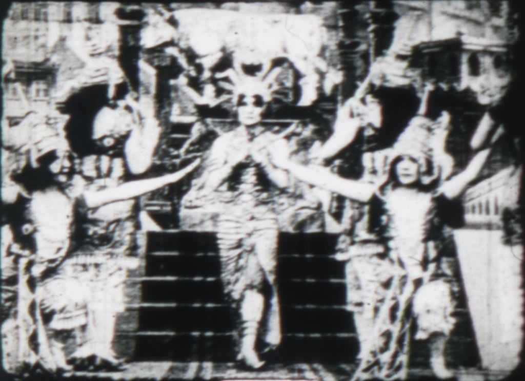 この映像は1912年に公開された中編映画(『La Fièvre de l’or』)の一場面を抽出したもの。元々は社会派ドラマの中編で、金銭欲に取りつかれた男が亡父の銀行を乗っ取り投資ブームを仕掛け、人々が踊らされていく内容を描いています。途中の祝宴に登場したのがこの舞踏場面。