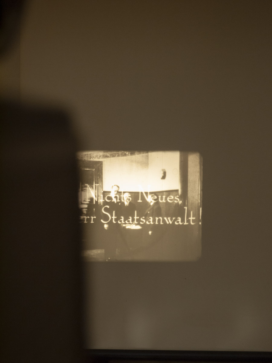 ラング監督の初期作『ドクトル・マブゼ』 の独語字幕版16ミリプリント。同作は『大賭博師』(153分)と『犯罪地獄』(111分)の二部構成で今回入手したのは第二部の後半(第2リール)。1800フィート強で映写時間は55分ほどでした。