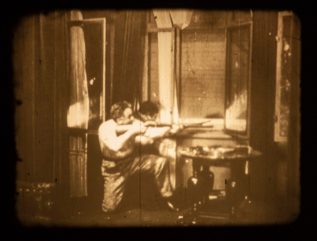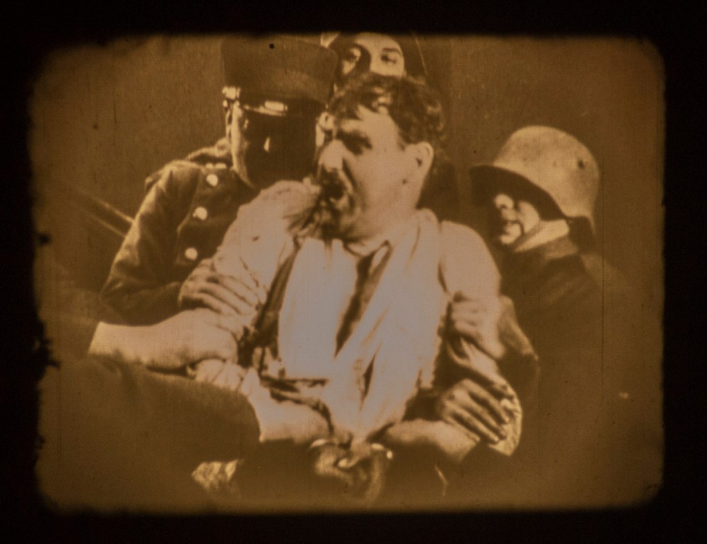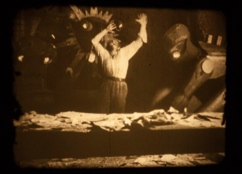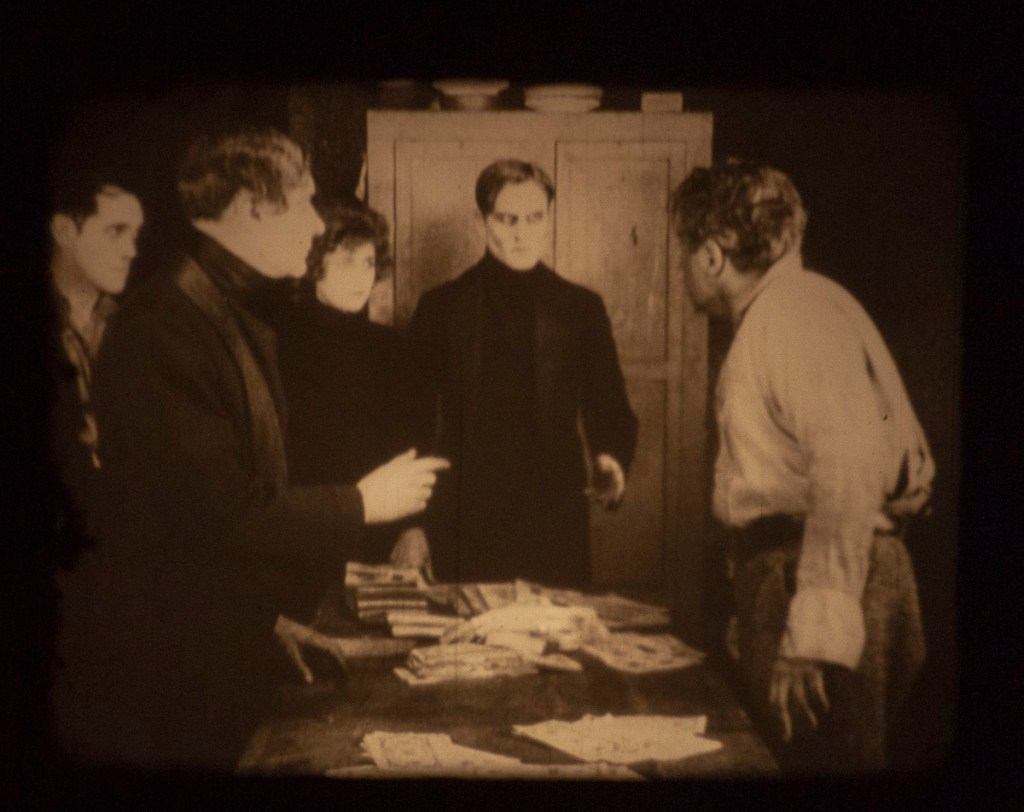 内容的には1)マブゼ博士が自身を追い詰めてきた検察官ヴェンクを催眠術で謀殺しようとする件から2)官憲が悪党団のアジトを急襲し銃撃戦となり、マブゼを除く一党を捕縛、拉致されていた伯爵夫人を救出し3)地下水道からの脱出を試みたマブゼが偽札工場に閉じこめられ発狂して果てる展開に対応。「完(ENDE)」の文字の後、アトラス小型映画社が手掛けている他の16ミリ無声作品(『カリガリ博士』『最後の人』)の宣伝が挟まれていました。