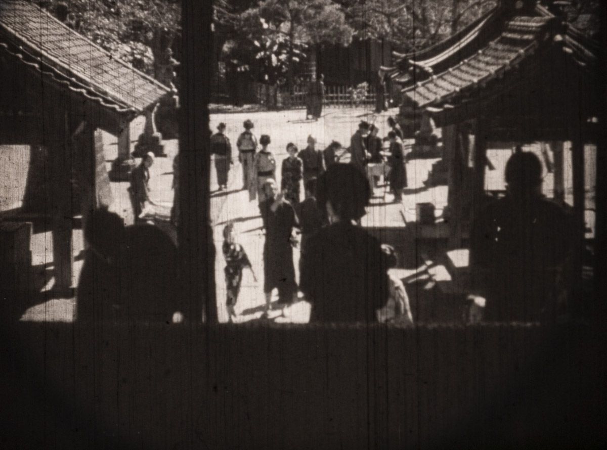 さらに場面が切り替わり寺の境内が映し出されます。賽銭箱の奥に置かれたカメラから撮影されたもので、先の登場人物たちの間で今から揉め事が起こりそうだ…の不穏な雰囲気でフィルムが終了しました。