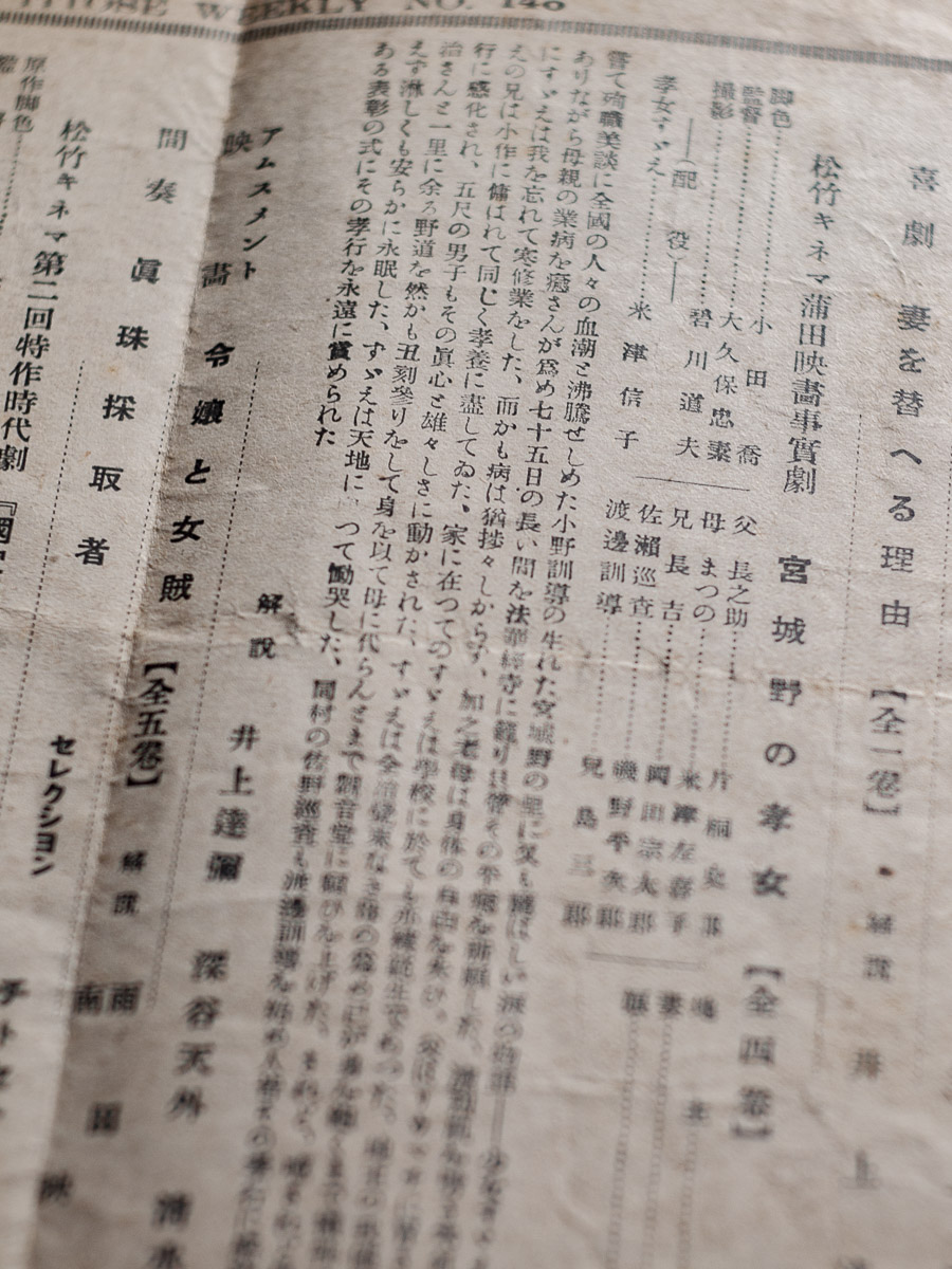 高尾光子、米津左喜子、米津信子の三者は『宮城野の孝女』『天を仰いで』(いずれも松竹蒲田・大久保忠素監督作)で共演。今回入手したフィルムはこのどちらかではないかと予測を立てました。