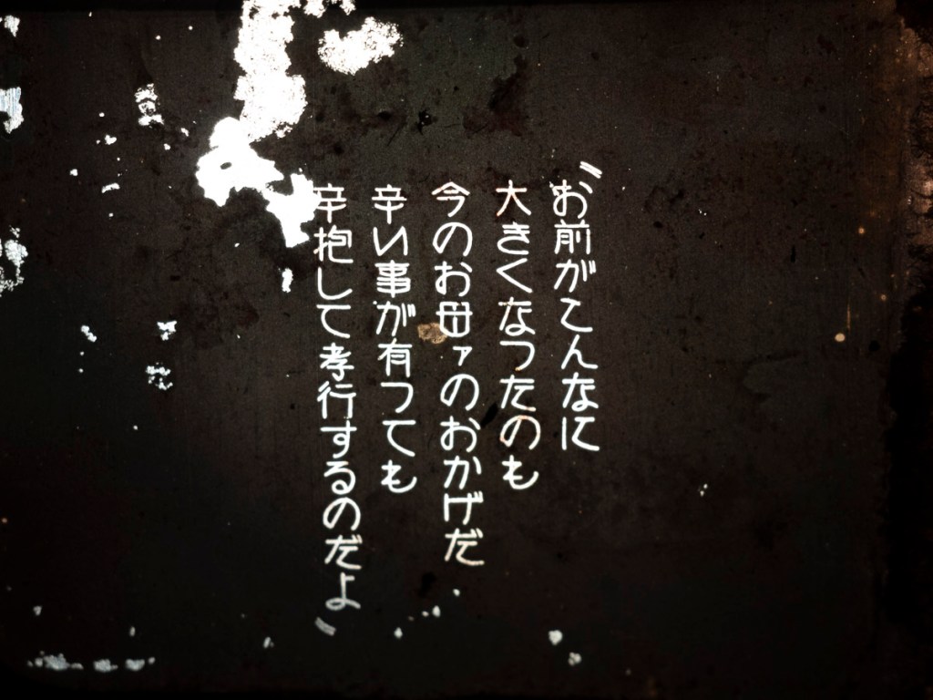 この仮説が正しかったとすると他の齣で幾つか対応するものが出てきます。上の字幕は現時点では元作品不明で浮いている一枚。「母」「孝行」といったテーマを見て取る事ができます。