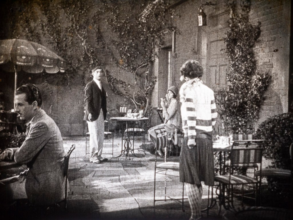 1)主人公(カンター)が喫茶店で泣いているクララ(クララ・ボウ)を笑わせようと一人芝居をしたところ、折あしくカルメン(ナタリ-・キングストン)の横槍が入り逆に怒らせてしまう場面。すました感じのキングストンと熱情的なクララ・ボウの対比が良く出ている流れでした。