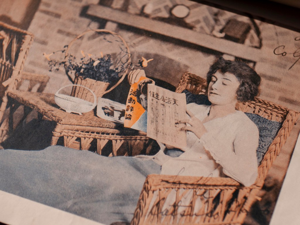 彩色グラビアに『活動評論』誌を読んでいるルース・ストーンハウス。単色グラビアにはマリー・ウォルカンプ、エニッド・マーキー、ドロシー・ダルトン、ルイーズ・ハフ等が登場。1910年代中盤から続いていたヴィクトリア朝系縦ロール女優の人気が一段落し、20年代を予感させるよりモダンな女優に焦点が当たるようになっています。