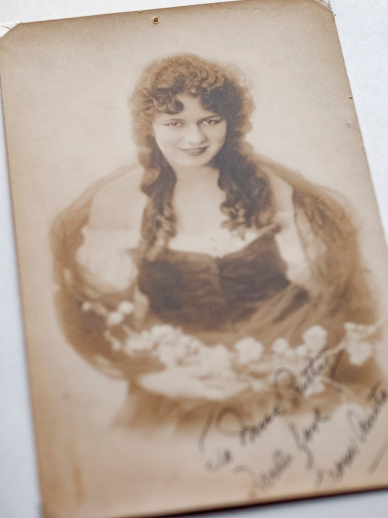 サイン物を入手するのは2回目、今回は短いメッセージが添えられています。同時に紹介しているユーラリー・ジェンセンと同一人物の旧蔵品で、一般のフアンではなく1910年代に縁があった顔見知り女性に送られた一枚です。