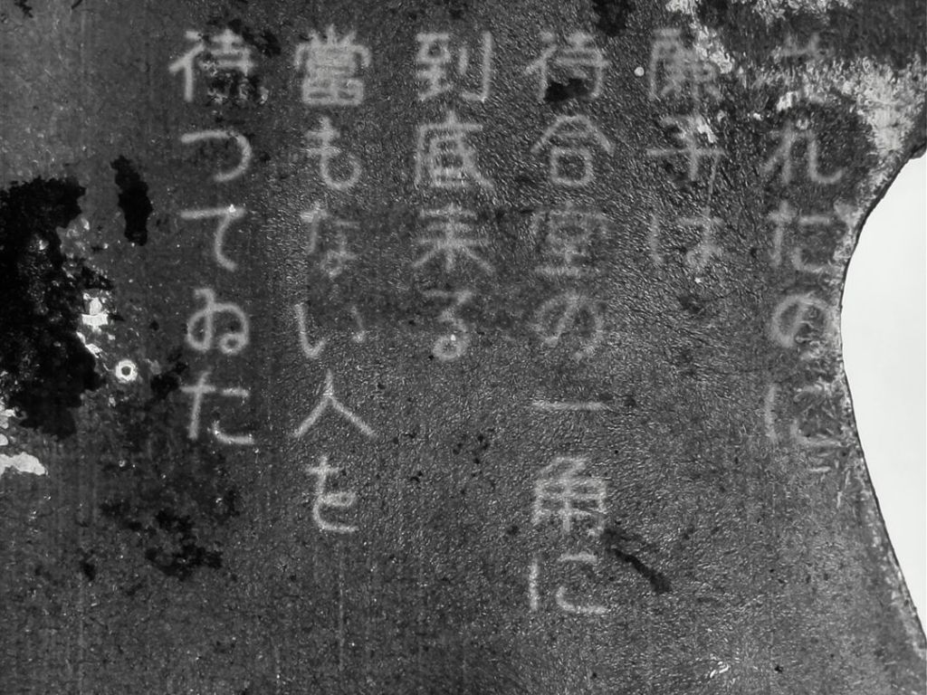 敏子の結婚式には、きつと多くの名士や貴婦人たちが列席してゐるだろう。北川を自分から奪ひ去つた敏子は、今晴の結婚披露宴でさうした人々の祝辭を受けて、華やかな人生の旅を祝福されていゐる。それだのに北川を奪はれた自分は浮浪人か何かの樣に待合室の一角に、到底來る當もない人を待つて驛員に怪しまれる。