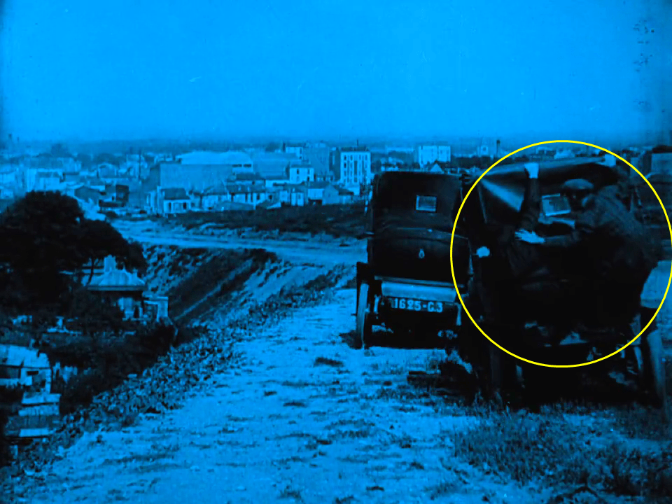 マルファが殺害されたのを見届けた後、吸血ギャング団の頭領は劇場を離れタクシーで逃亡を図ります。その姿を認めた主人公の記者ゲランドが別なタクシーを捉えて後を追う展開になっていきます。