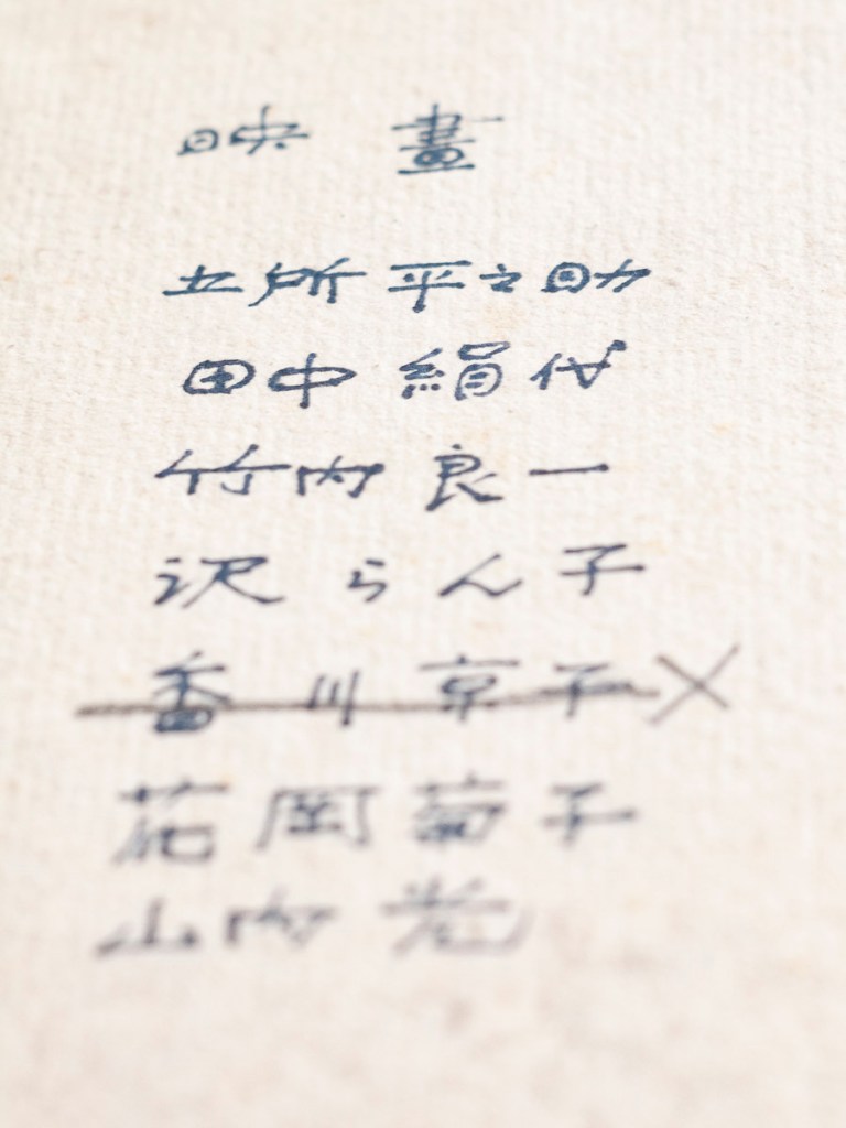 5番目の名前は後年に鉛筆の横線を引かれ×が付されています。確かに、時期的にも香川京子さんはないですよね。こちらは1930年代に松竹で活動していた絹川京子さんのサインでした。