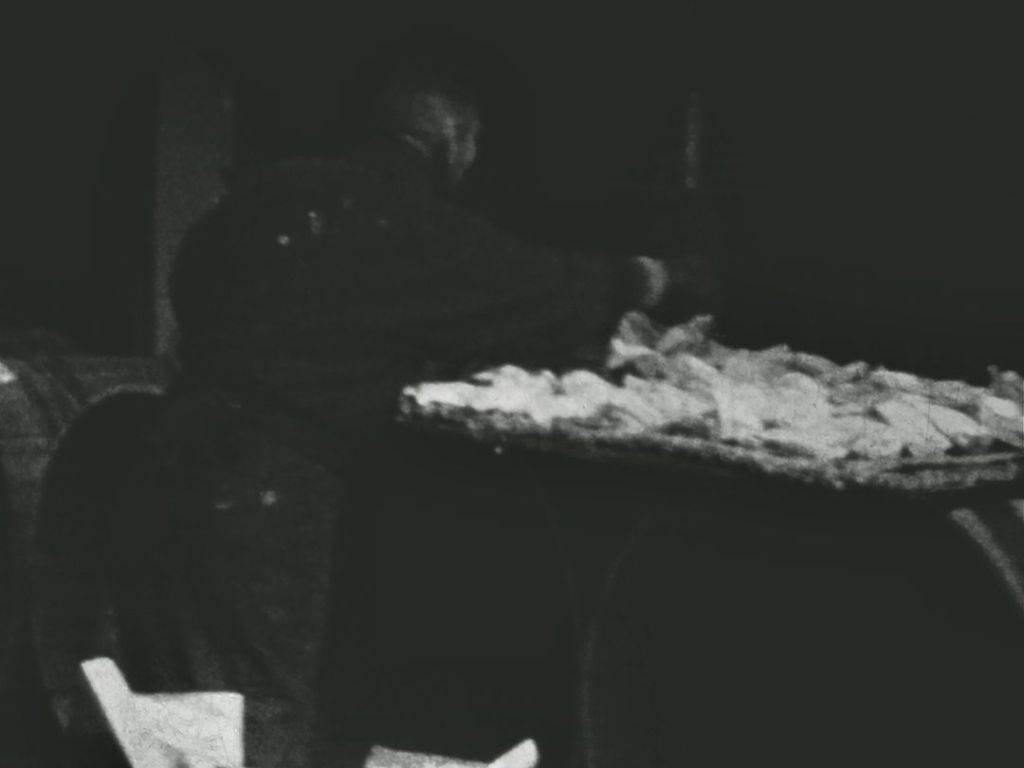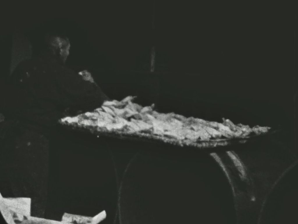 また動画には酒造りに関わる作業も記録されていました。上は「米刺し」を使って米俵の米を抜き出し品質をチェックしている様子。