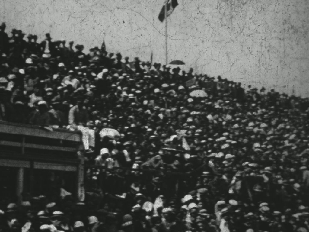 1929年9月に玉川プールで開催された学生水上競技大会(インカレ水泳)を記録した20メートル物。早稲田大学一強の時代が続いていた中、明治大学が7年ぶりに優勝した年に当たるそうです。