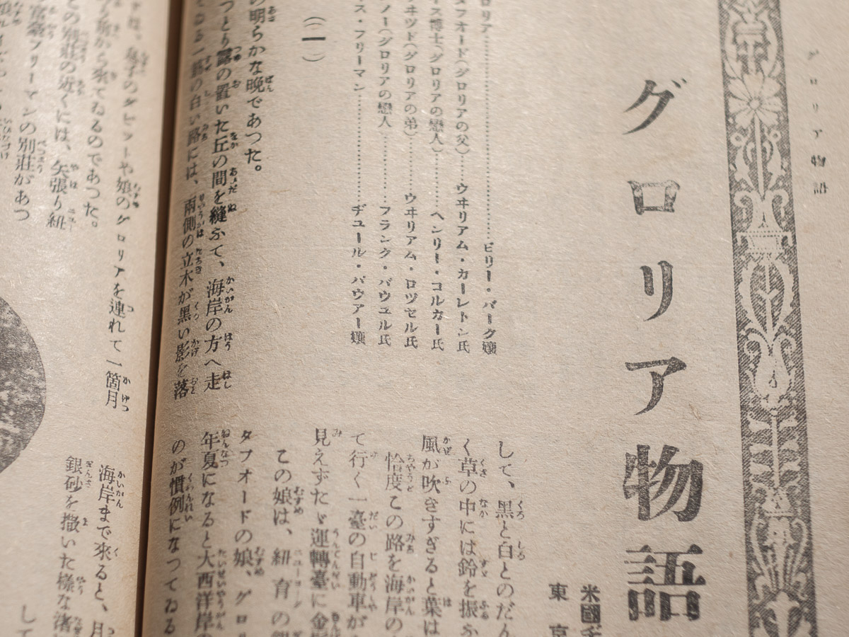 読み物としては『グロリア物語』を筆頭に『戀の一念』『朝比奈三郎』『白虎隊』と続き、フェアバンクス主演作『快男児』とネヴァ・ガーバー主演の連続活劇『電話の聲』も収められています。
