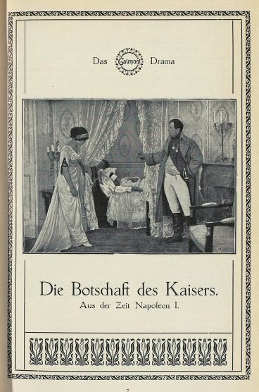 残念なことに『皇帝陛下の使者』については配役データが残っていません。当時ゴーモン社が作成した資料が幾つかあるものの、どれもキャスティングに関わる言及は含まれていませんでした。1912~14年頃のゴーモン社は花形俳優を複数抱えていて、若手女優(シュザンヌ・グランデ、ファビエンヌ・ファブレージュ、イヴェット・アンドレヨール)、若手男優(ルネ・ナヴァール)、ベテラン女優(ルネ・カルル)、子役(ルネ・ダリー、シュザンヌ・プリヴァ)中心に興行を回していました。ところが『皇帝陛下の使者』はこの定番の面々と違う男女優を使っているようなのです。