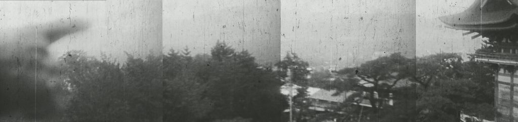 清水から西に市街地を望む。水平移動で撮影された動画からパノラマ風景を再構成してみました。以前に小石川後樂園やペナン島・ジョージタウンの水上住宅でも使った手法です。