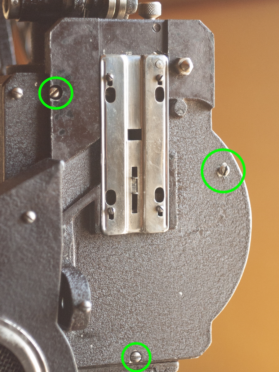 先日入手したエクラA型映写機はそのままでは実写に使用できない状態でした。第一の不具合はモーターに連動した「主軸が動かない」。シャッター羽根が回らず、スプロケットも動かず、フィルム送りも機能しない…この状態で電源を入れてもモーターに負荷をかけるだけですので、まずはここから手を加えていくことにします。