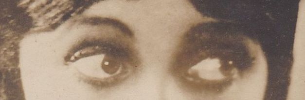 絵葉書から分かるようにバーバラ・ラ・マーは斜視(strabismus/cross-eyed)の持ち主でした。言われないと気づかない程度ですが『売られ行く魂』のサンプル画像を見ても両目の軸がずれているのを確認できます。