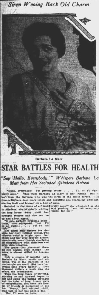 1925年後半、オーバーワーク、睡眠不足、アルコールや薬物依存などが重なり体調を崩して療養に入ります。同年11月にロスアンゼルス・タイムスに掲載された記事では「近日中の復帰」を約束。しかしその願いは叶わず約3ヶ月後の1926年1月末に訃報が届きました。直接の死因は結核とされています。