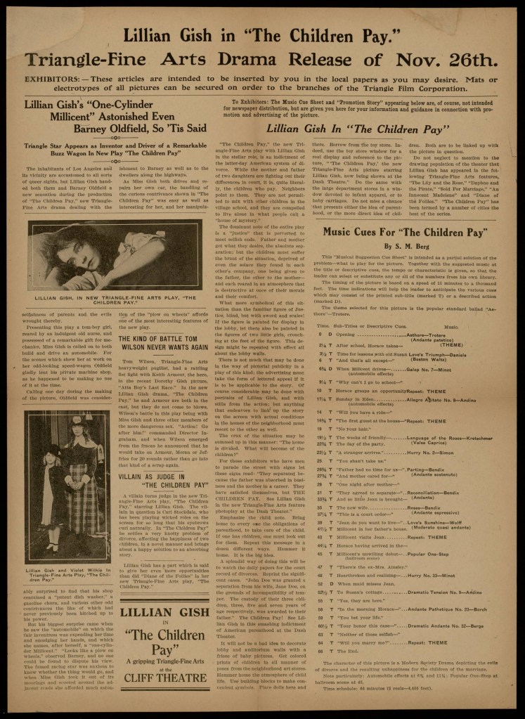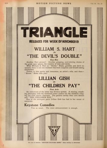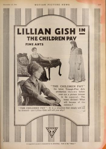 1916 Triangle Advertisement for “The Children Pay”