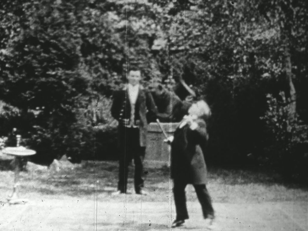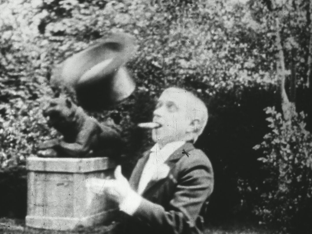 小人症パフォーマー・ピュグメオ氏による大道芸を記録した初期の9.5ミリフィルム。
