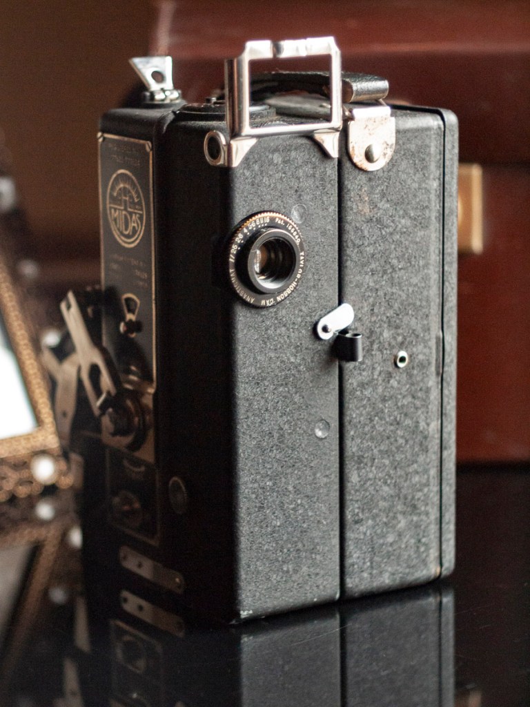 1930年代、9.5ミリ小型映画の世界でフィルムの撮影機能と上映機能を一台の機械にまとめてしまう「カムジェクター(映写撮影両用機)」の市販が行われていました。中心となっていたのが英国メーカーで、パテ社系の撮影機と映写機が支配的なシェアを占めていたイギリス市場でカンプロ(Campro)とミダス(Midas)という二つの機種が一定の支持を集めています。昨年末、ミダスを入手することができました。
