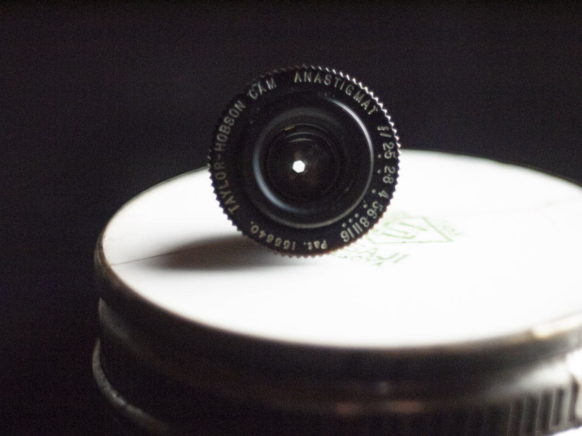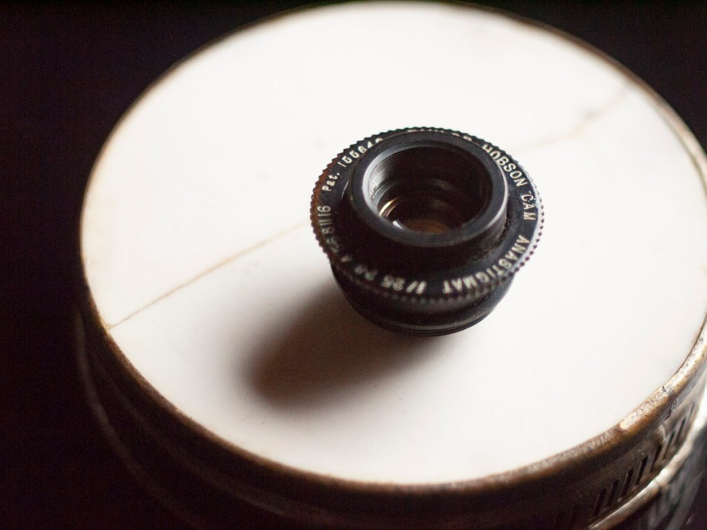 レンズにはテイラー・ホブソン社のカム・アナスティグマット f/2.5を採用。当時このサイズの映写機に標準装備された英国製レンズとしては最高峰の一本で、品質に対するメーカー側のこだわりを感じさせます。