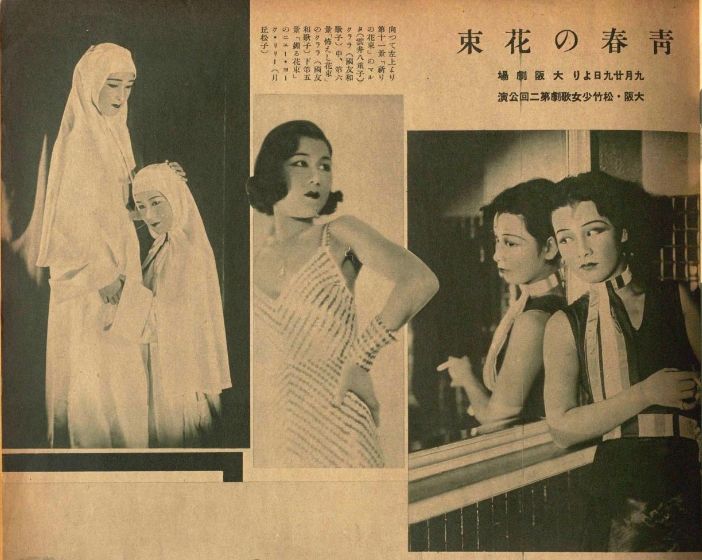 昭和9年(1934年)8月から開催された新生OSSK第一回公演は『カイエ・ダムール(愛の手帖)』。雲井八重子さんはヒロイン役イヴオンヌ役を担当、服部良一&三笠静子の主題歌に彩られた同作は好評で、その勢いで9月からの第2弾公演『青春の花束』を成功させています。