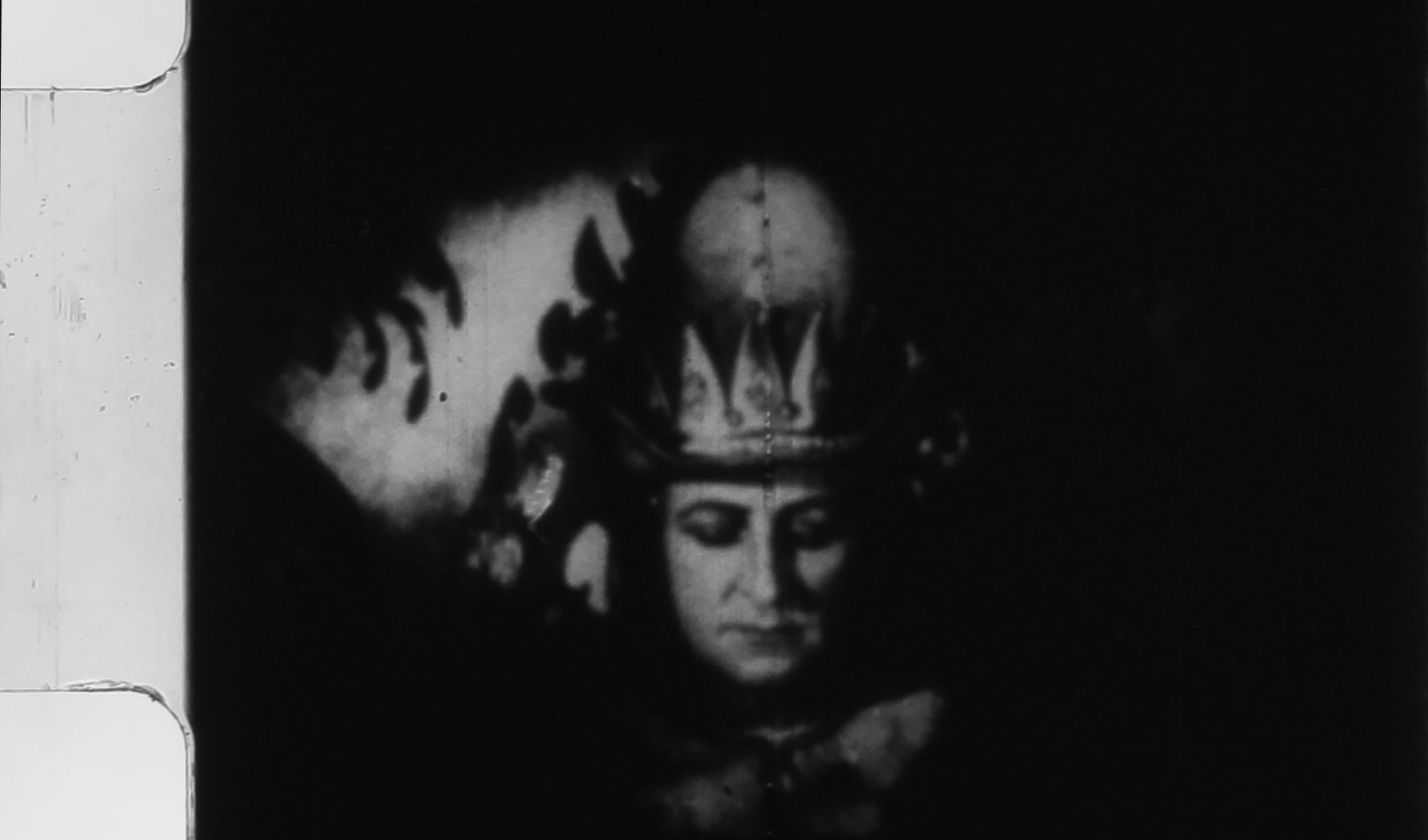 フィルムの最初の1/3はコントラストが強め、屋内撮影場面ではセットデザインの細部などが殆ど黒く潰れてしまっています。中盤の1/3、呪文を通じゴーレムに魂が吹きこまれる流れの前後は逆に低コントラストで、被写体がグレーがかって背景の黒に紛れてしまう感じでした。最後の1/3は屋外撮影が多いのですが、この辺が一番判明に写っていました。