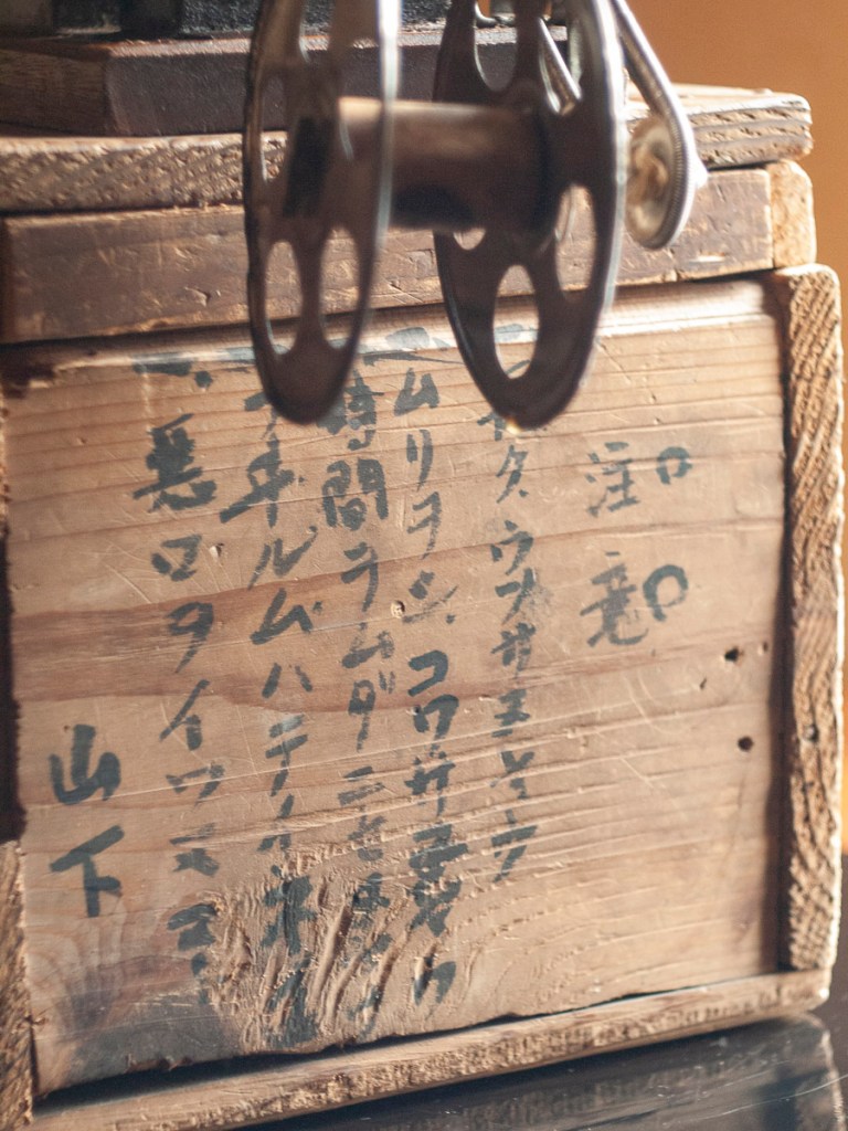 木箱に収められていたのは地球印の35ミリ用玩具映写機。山形県東田川郡長滝村在住の山下實氏が所蔵していた個体です。