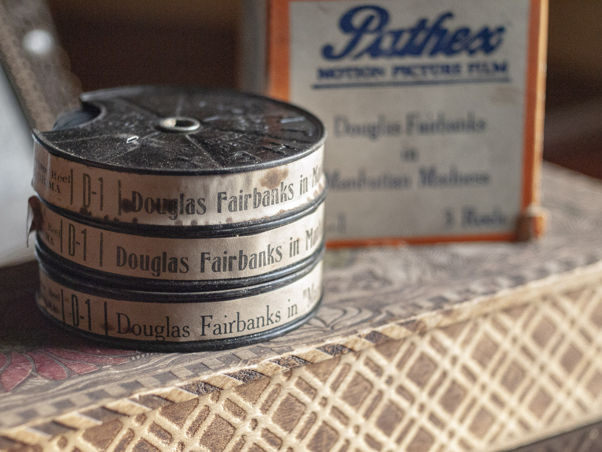 1920年代中盤、米国でパテックス社が9.5ミリ映画フィルムの市販を開始した時、長編ドラマカテゴリー(D番)の第一弾として発売されたのがダグラス・フェアバンクス主演作『ドーグラスの好奇』でした。アメリカ西部と東部の対比を組みこんだロマンチック・コメディで、ジョージ・イーストマン・ハウス社(16ミリ)とMoMA(35ミリ)が現存プリントを所蔵しています。