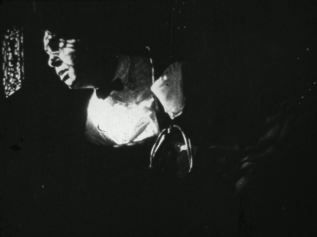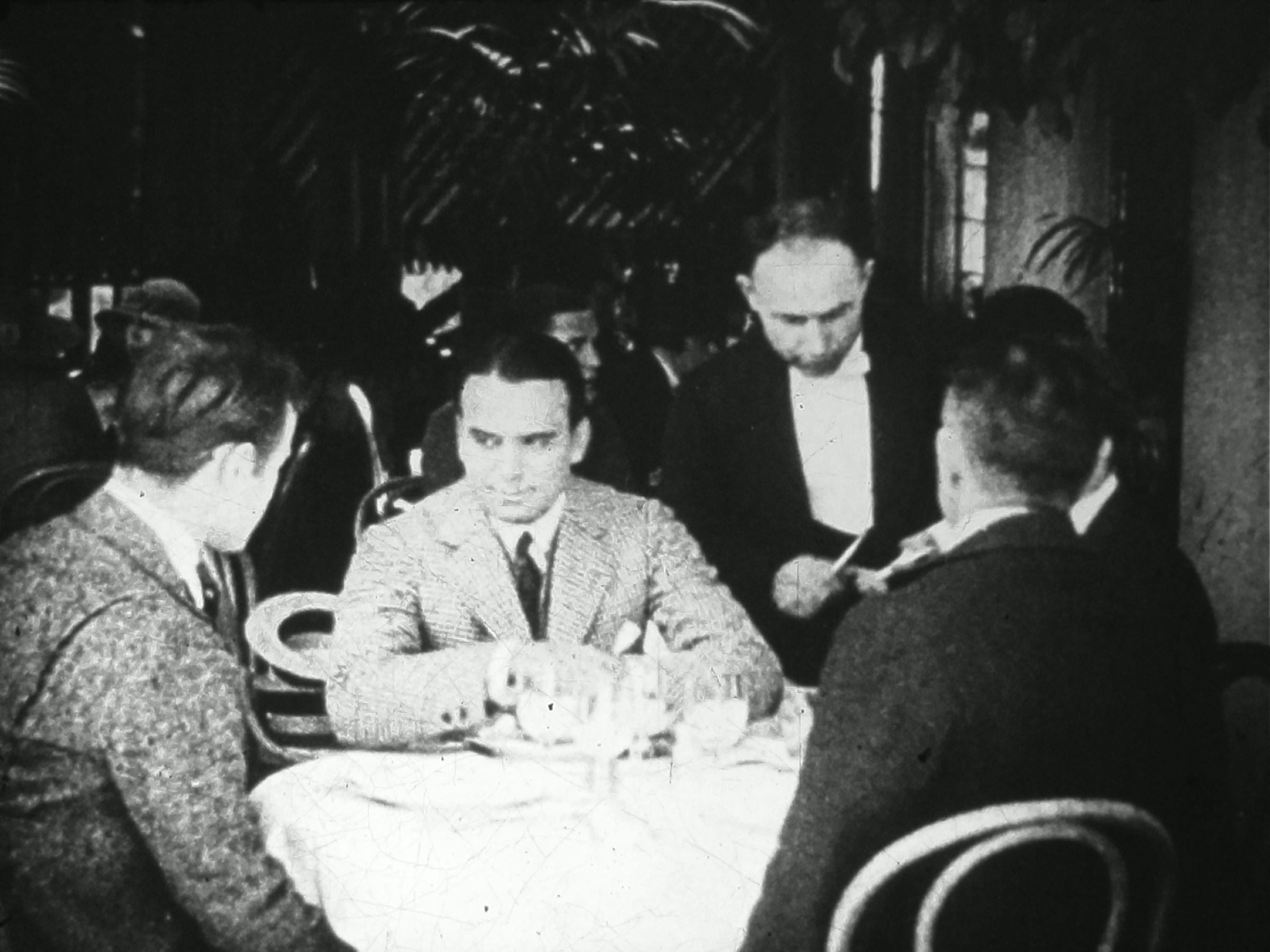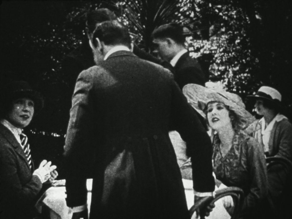 フェアバンクスの立ち位置が突然右から左に変わっています(9.5ミリ版は終始右に位置)。齣の修復などでスプライシングを行った際に左右逆になったのでしょう。以前にリーフェンシュタール主演の『大いなる跳躍』でも同様のケースが見られました。複数プリントを照合し整合性をチェックしていく作業の重要さ(9.5ミリ版が必ずしも正とは限らない)を再確認できます。