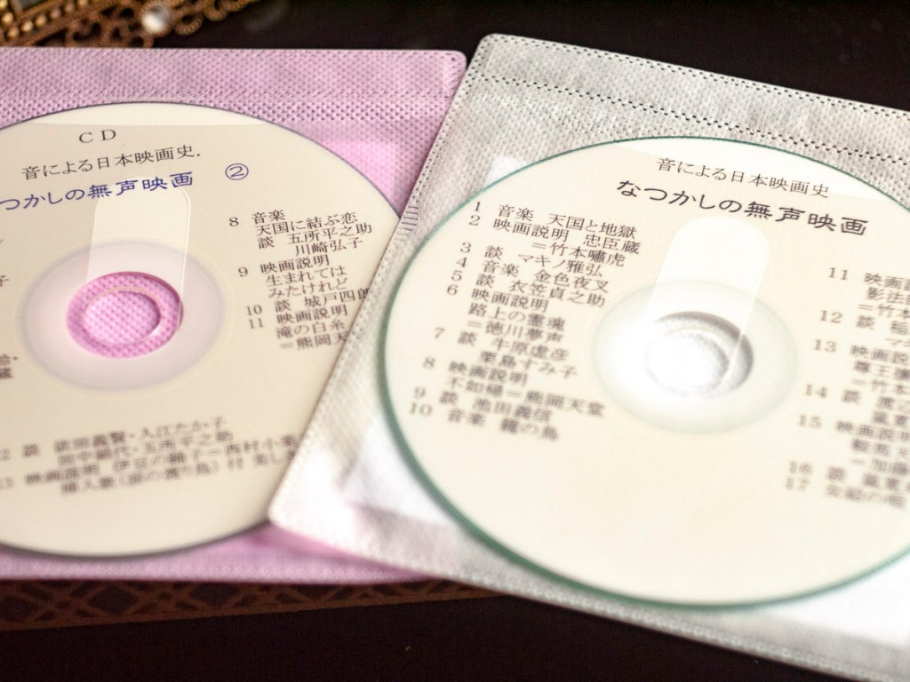 1970年代初めに発売された2LP『音による日本映画史 なつかしの無声映画』をデジタル化した2枚のCD-R。