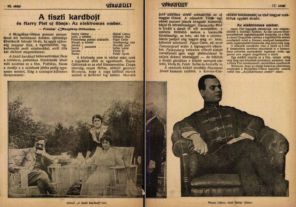 このうち映画デビュー作となった『二人に愛されし者』(Akit ketten szeretnek、1915年、ケルテース・ミハーイ)が現存している他、近年フィルムが発見され、修復作業の完了が最近伝わってきたばかりのホッライ・カミッラ主演作『死後』(A halál után、1920年、デエーシー・アルフレード)にも脇役としてクレジットされています(配役などは現時点で未詳)。