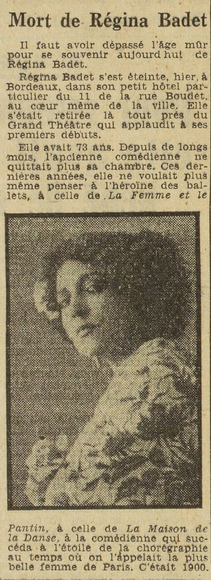 レジーナ・バデの名を轟かせたのは1910年にアントワーヌ座で上演された『女と人形』でした。